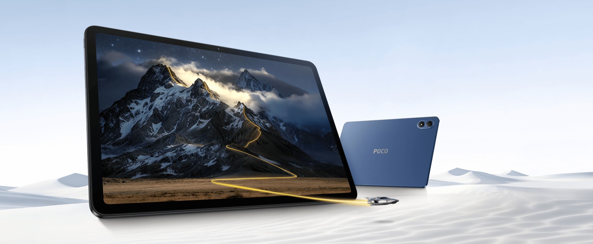POCO Pad M1 Wi-Fi выполнен в прочном алюминиевом корпусе, который ощущается премиально и надёжно. Толщина всего 7.5 мм делает планшет удобным для использования одной рукой, несмотря на крупный экран. Габариты 279.8×181.65 мм и вес 610 г дают комфорт при чтении, работе и просмотре видео, а строгие линии корпуса подчёркивают современный стиль устройства.